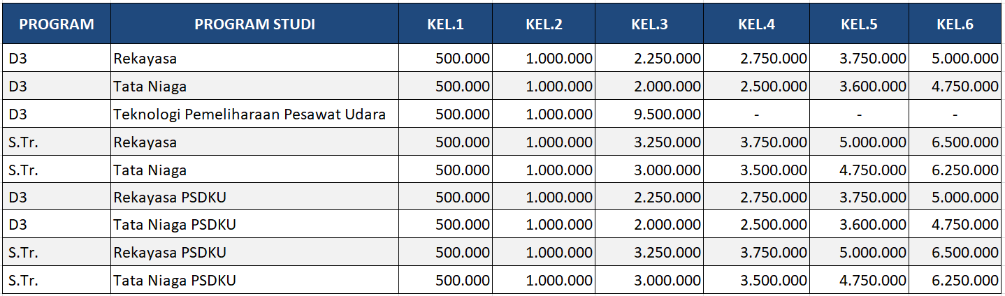 Ket: Berlaku UKT Proporsional sesuai kemampuan ekonomi